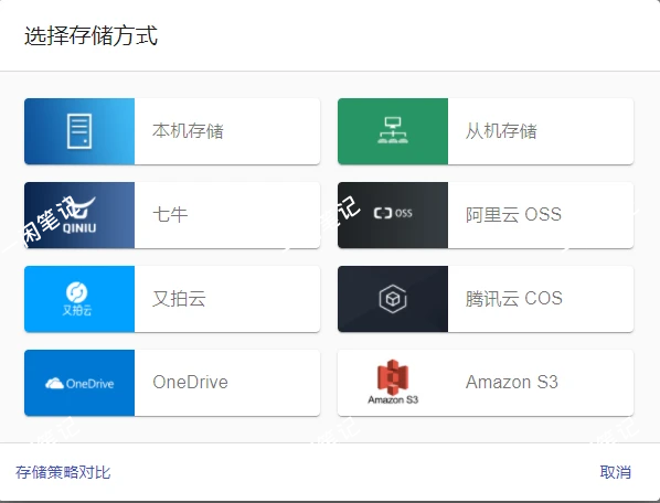 支持本机、从机、七牛、阿里云 OSS、腾讯云 COS、又拍云、OneDrive (包括世纪互联版) 、亚马逊 AWS S3 作为存储端