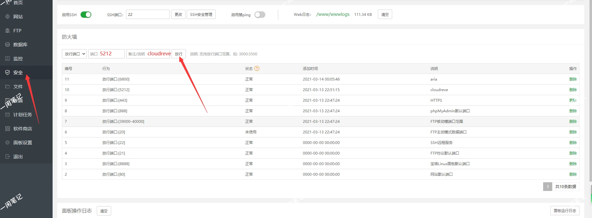 ②放行 vps 上的 8888 端口,登录宝塔面板。