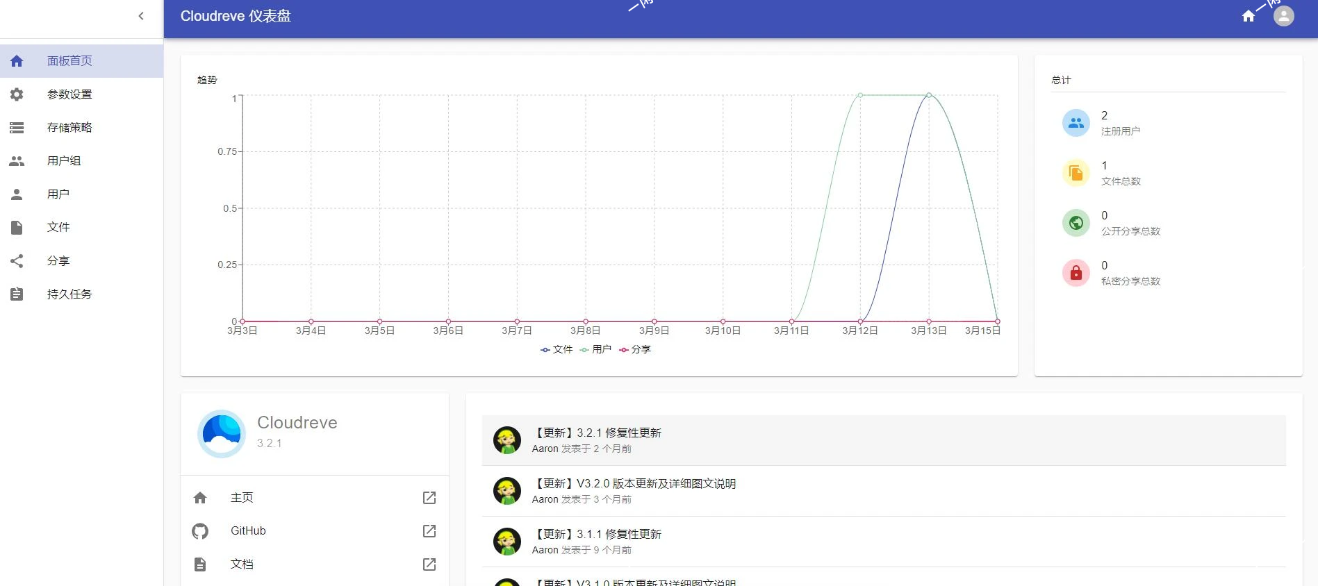 Cloudreve 是一款出色的国产开源免费 PHP 网盘程序 (最新版已改为 Go 语言全新开发,无需配置 PHP 环境,性能更好,也更轻量强大)。它能帮您快速简单并以最低的成本搭建一个公私兼备的网盘系统。而且安装过程非常简单,只要你有自己的服务器,几分钟就能搭建起来。你可以将 Cloudreve 作为个人私有云网盘使用,也可作为小型公共云盘给公司、团队甚至是大量用户多人共同使用。Cloudreve 支持在 Windows 和 Linux 主机上搭建,功能很丰富,而且还很接地气,基本上你需要的网盘功能它都能提供。