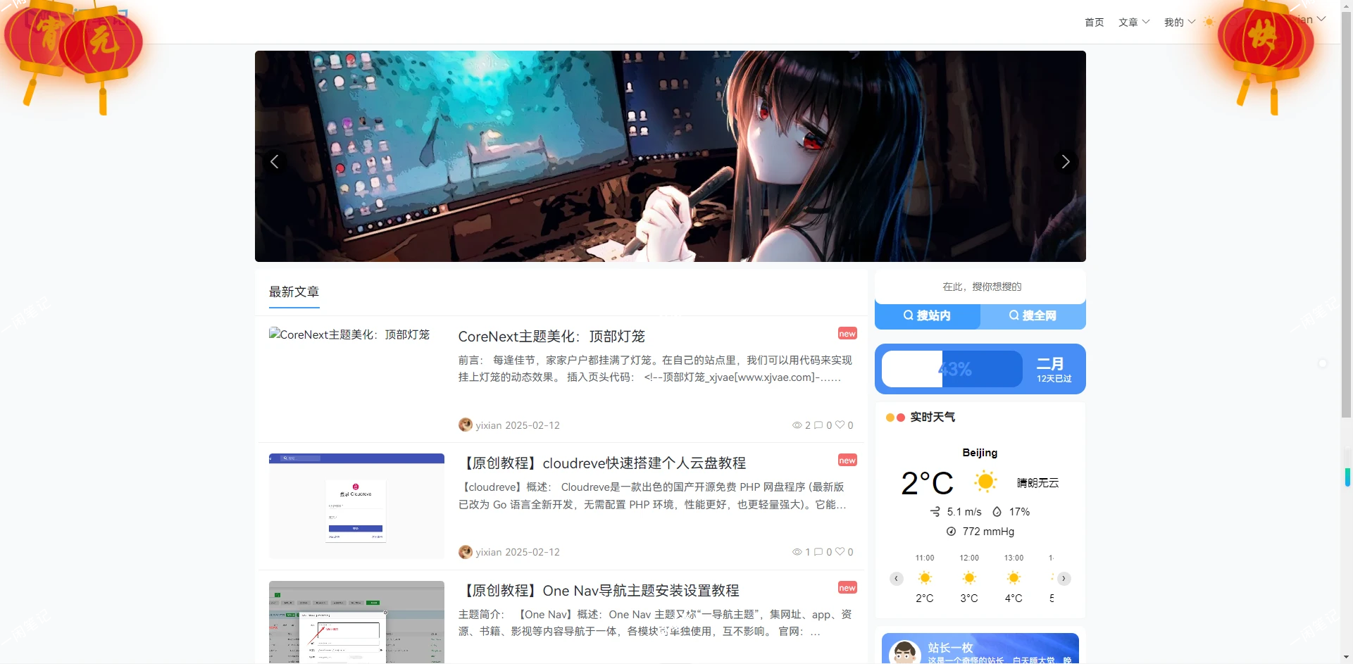 每逢佳节,家家户户都挂满了灯笼。在自己的站点里,我们可以用代码来实现挂上灯笼的动态效果。
